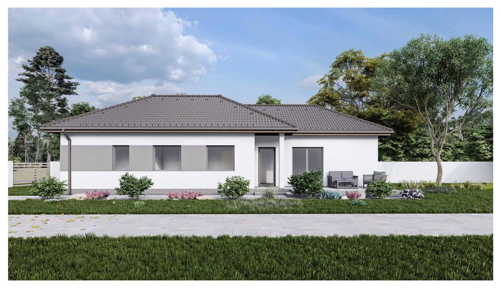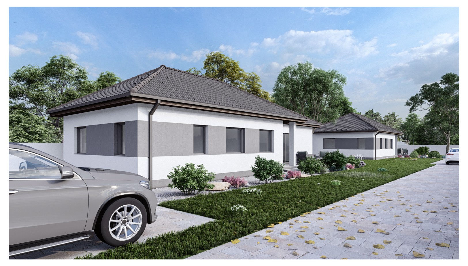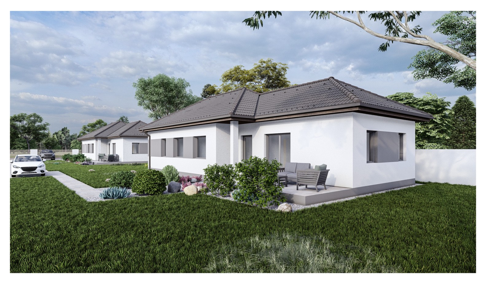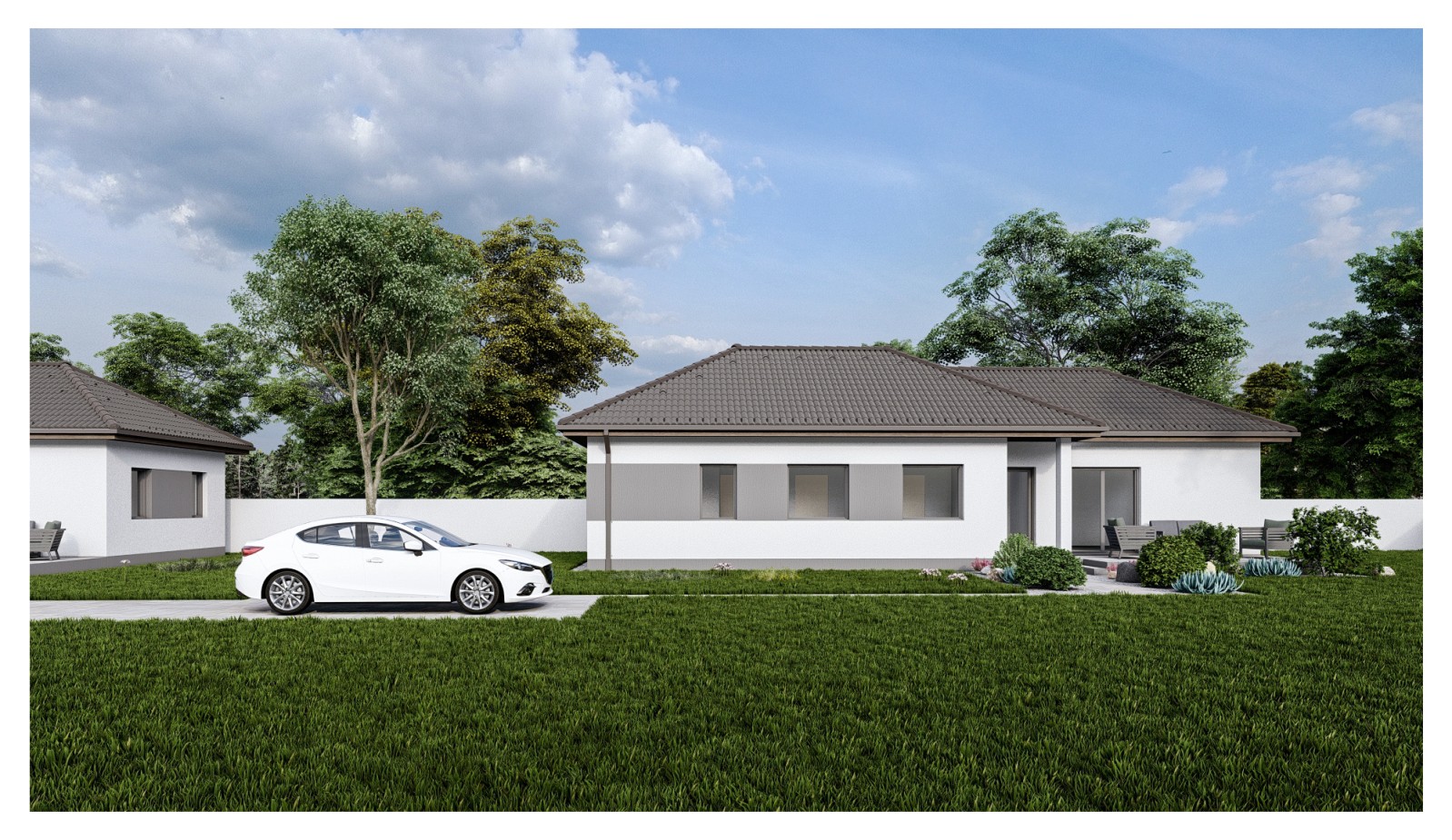 A ház tégla építésű, modern technológiával készül, praktikus elrendezéssel és korszerű kialakítással. A 4 szoba és a 2 külön fürdőhelyiség nagyobb családok számára is ideális életteret biztosít, míg az amerikai konyhás nappali a családi élet központi helyszíne lehet.