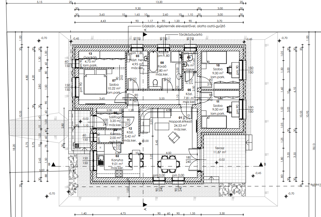 A ház praktikus elrendezésű, élhető terekkel rendelkezik: