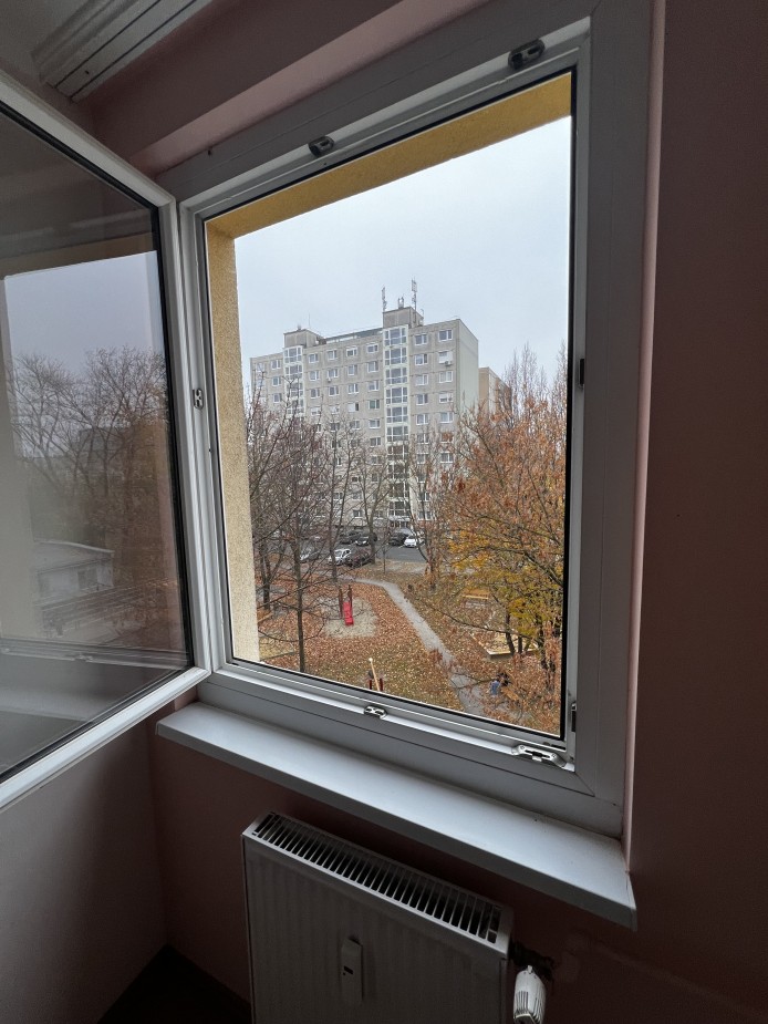 A lakás parkolóra néz, ezért csendes, az utca zaja nem hallatszik be.